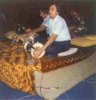 Local Cape Town musicians on the shintur (left) and dhol (right) in a qawwali performance, 1982.